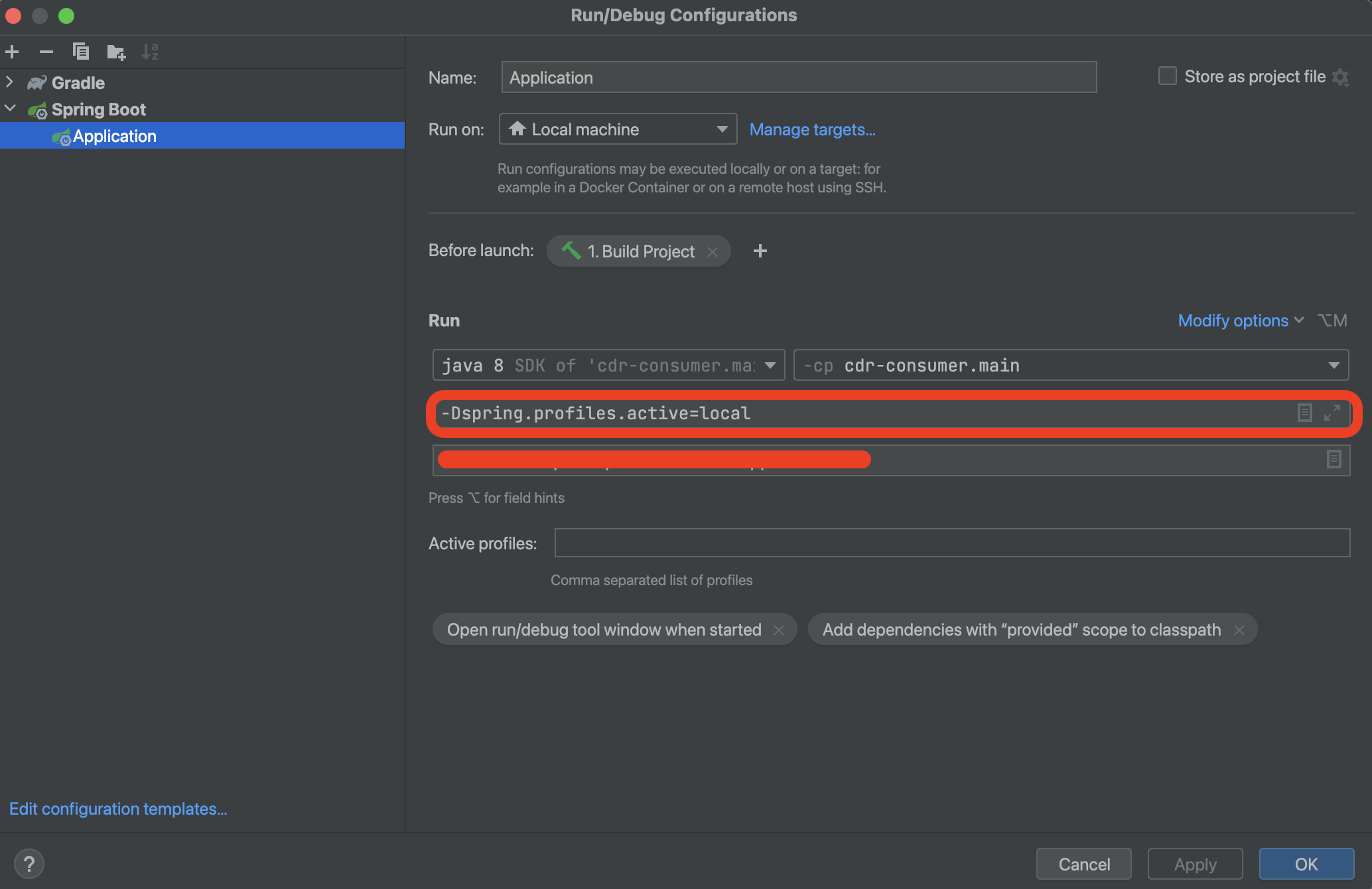 - 애플리케이션 실행 시 JVM 시스템 속성으로 지정하기