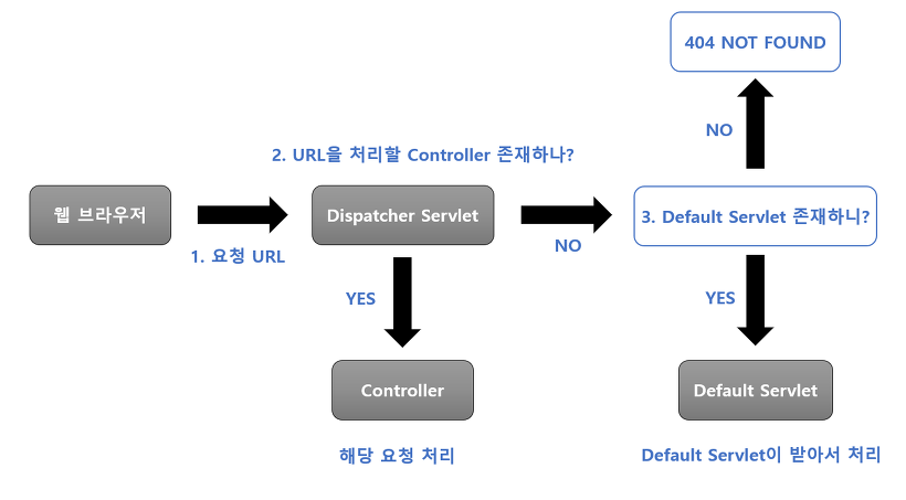 defalut-servlet이란 앞서 작성된 servlet에서 받은 요청을 처리할 수 없을 경우, default-servlet으로 처리할 수 있음.