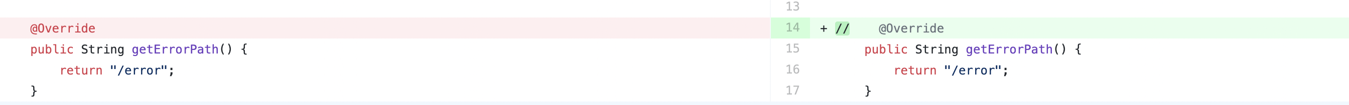 errorController 역시 버젼이 올라가면서 override 해야하는 getErrorPath가 사라졌다. 그래도 동작하는데는 문제가 없다.